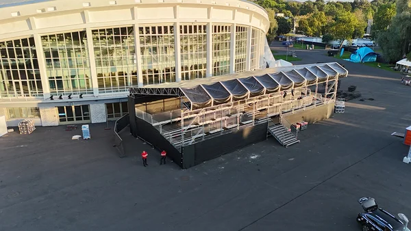 What made the stage even more special was that it required approximately 120 tonnes of concrete as counterweight. In addition, we installed a VIP grandstand with a roof, accommodating around 200 people.