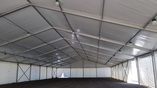 In total, we installed over 7,000 m² of tents of various sizes and more than 1,000 m² of flooring, including a main stage area of about 160 m². All structures were erected in just 8 days and dismantled in 5 days. The largest tents were 21 meters wide and 50 meters long — we installed three of them.