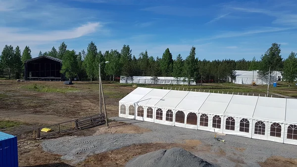 Всего мы установили более 7000 м² палаток разных размеров и более 1000 м² напольных покрытий, включая главную сцену площадью около 160 м². Все конструкции были смонтированы всего за 8 дней и демонтированы за 5 дней. Крупнейшие палатки были шириной 21 метр и длиной 50 метров — мы установили три таких.